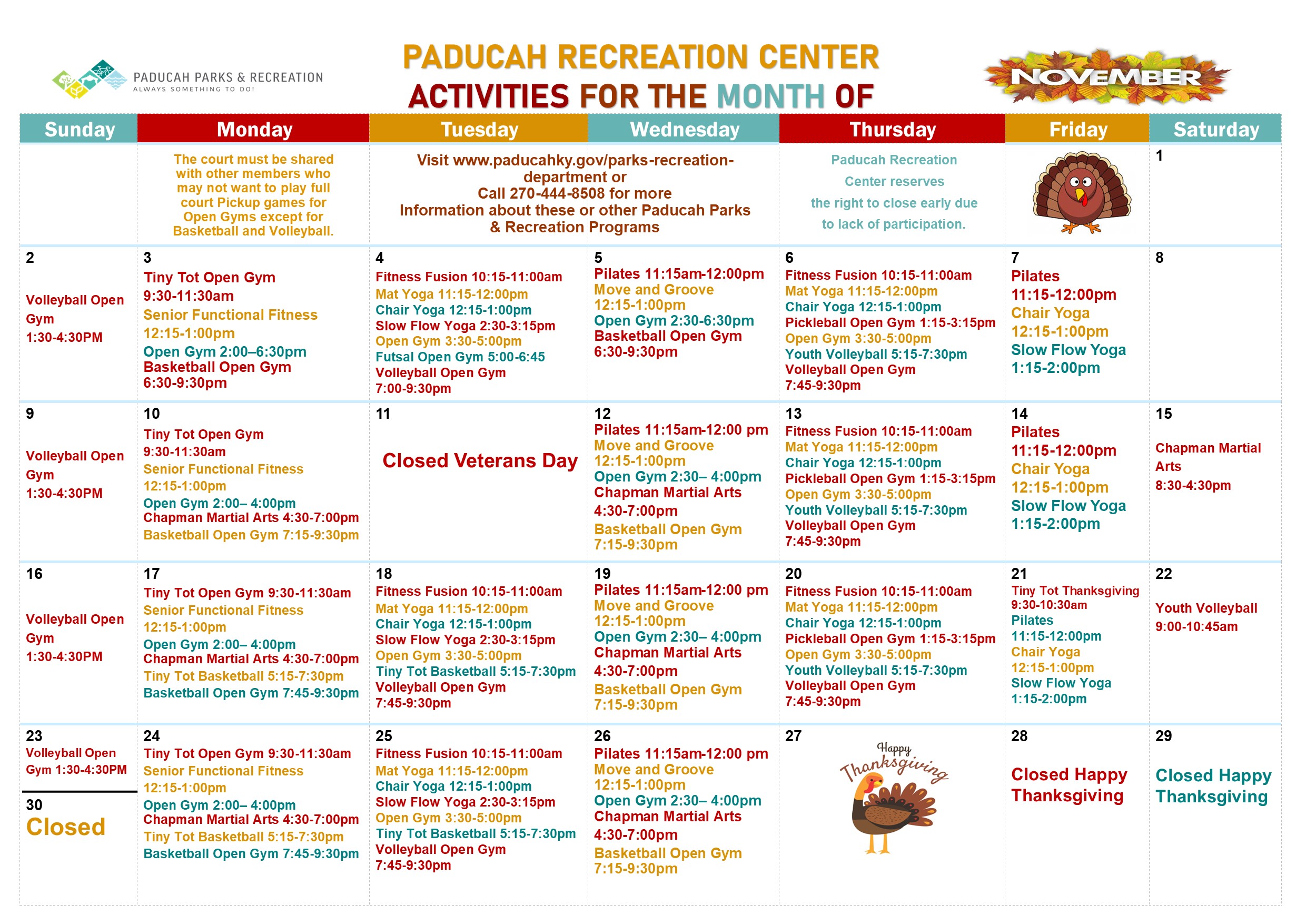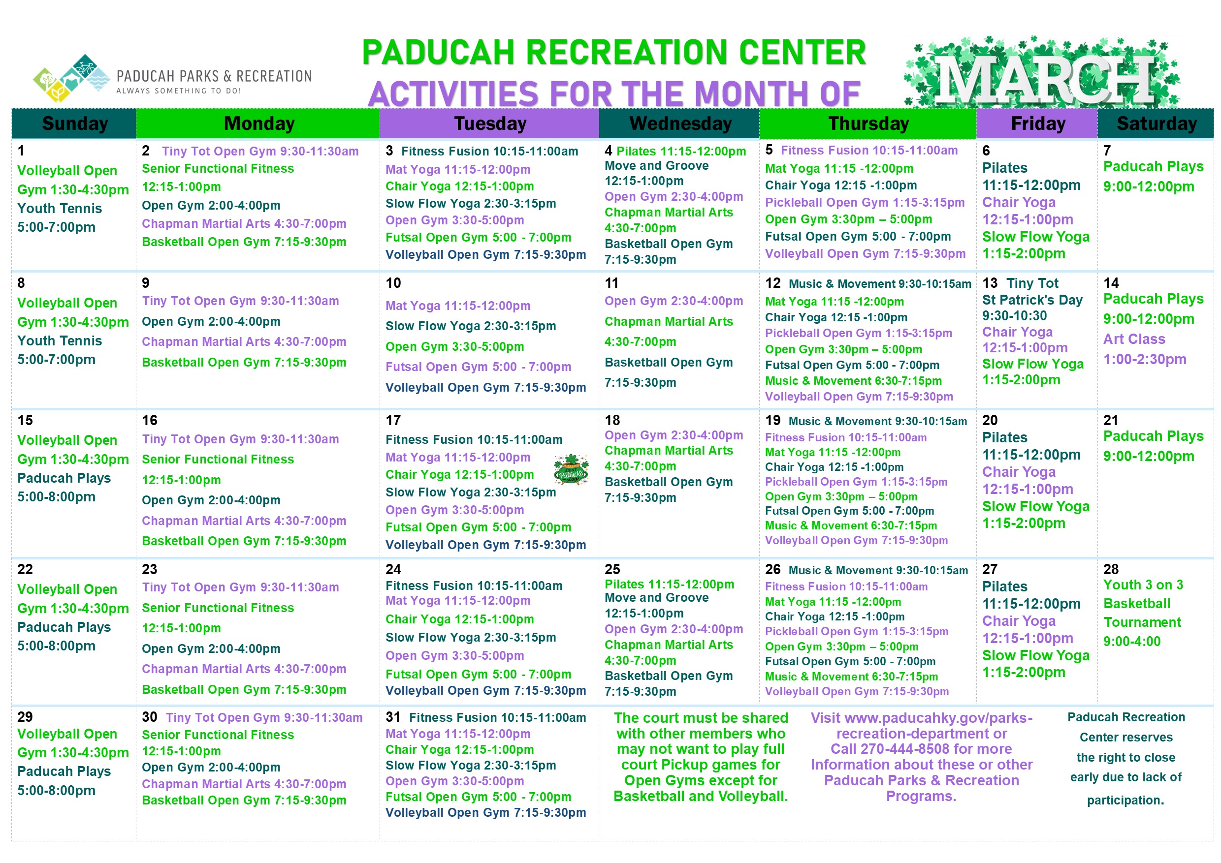 The Paducah Recreation Center is available for reservations for birthday parties and athletic/fitness activities only.